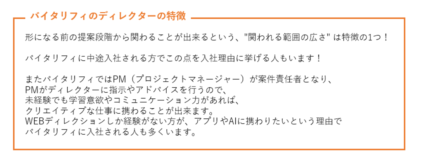 【バイタリフィのディレクター職とは?!】