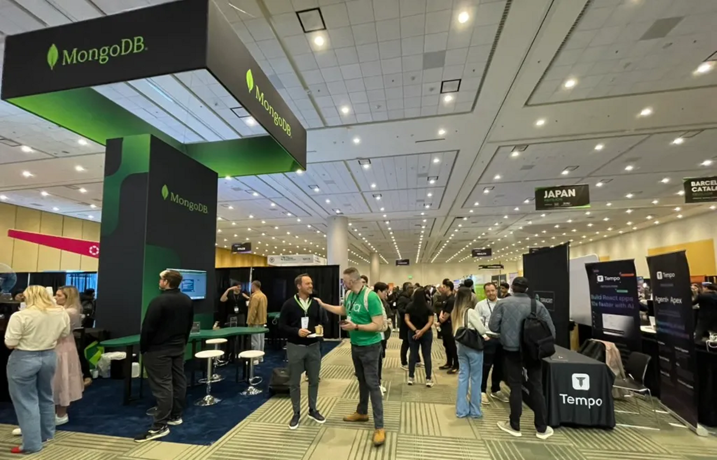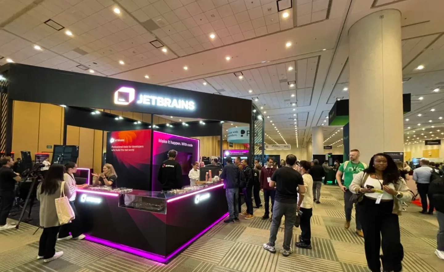 会場の入り口には、 JetBrains や MongoDB といった、普段我々がよく目にするソフトウェア企業がブースを構え、新サービスや主力製品の紹介を行っていました。