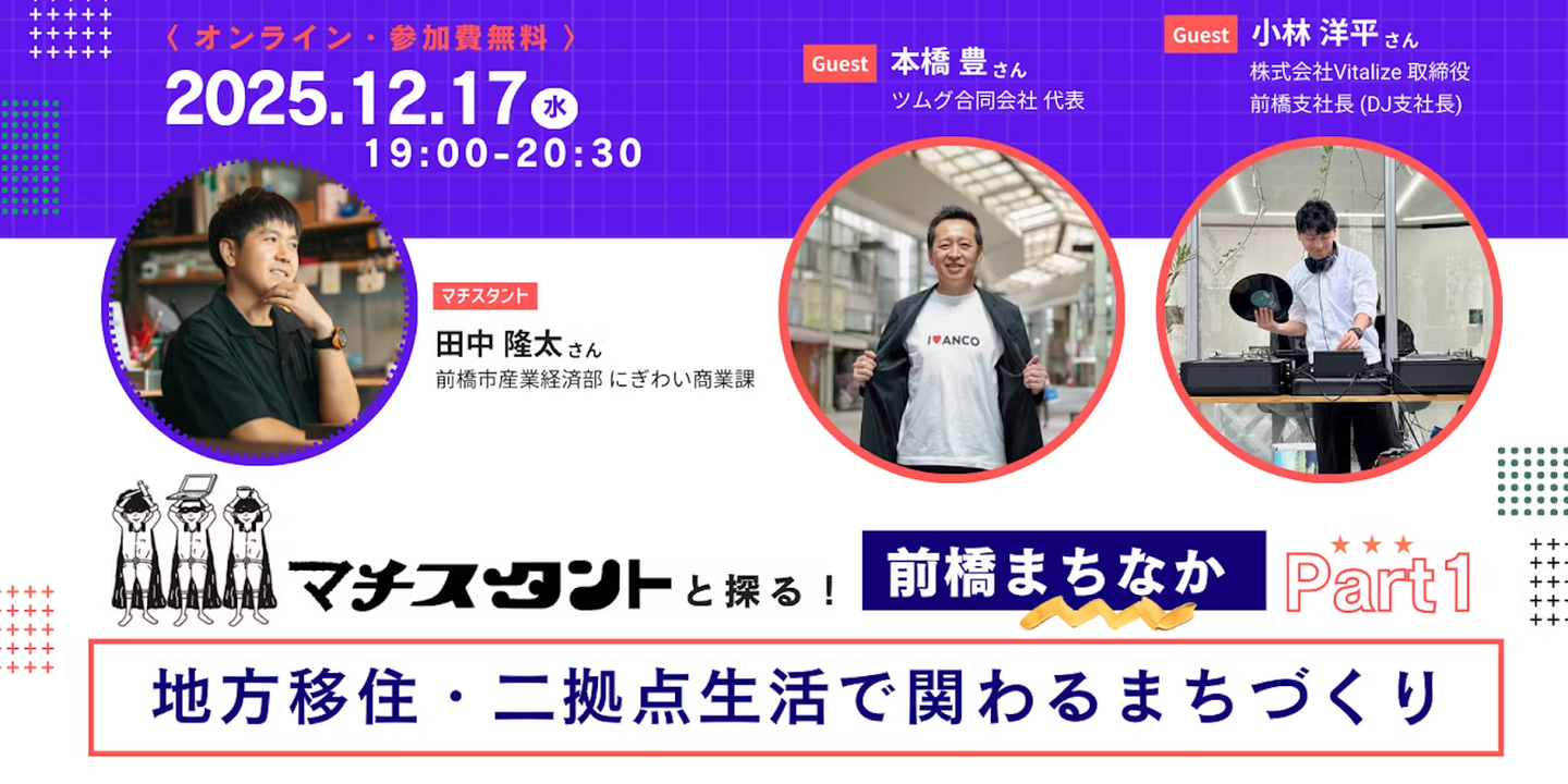 動画では、前橋市にぎわい商業課の田中隆太さんが提供するユニークな出店支援「マチスタント」の内容や、ツムグ合同会社様の地域貢献のチャレンジについても詳しく語られています。