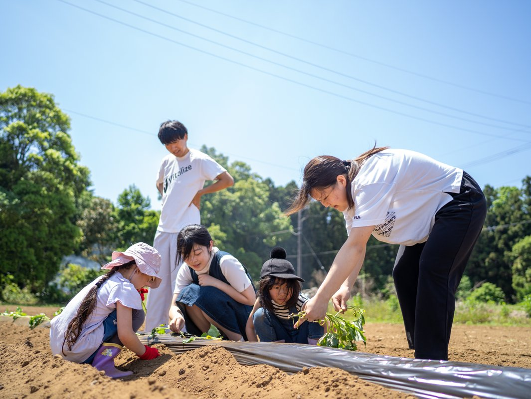 農業を知ってもらおう、土に触れてもらおうということでサツマイモの苗植え体験をしたり。