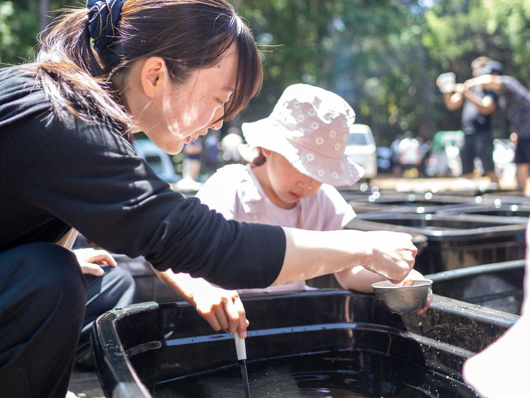 新規事業の1つ、めだかの養殖について知ってもらおうと、めだかすくいをやったり…。