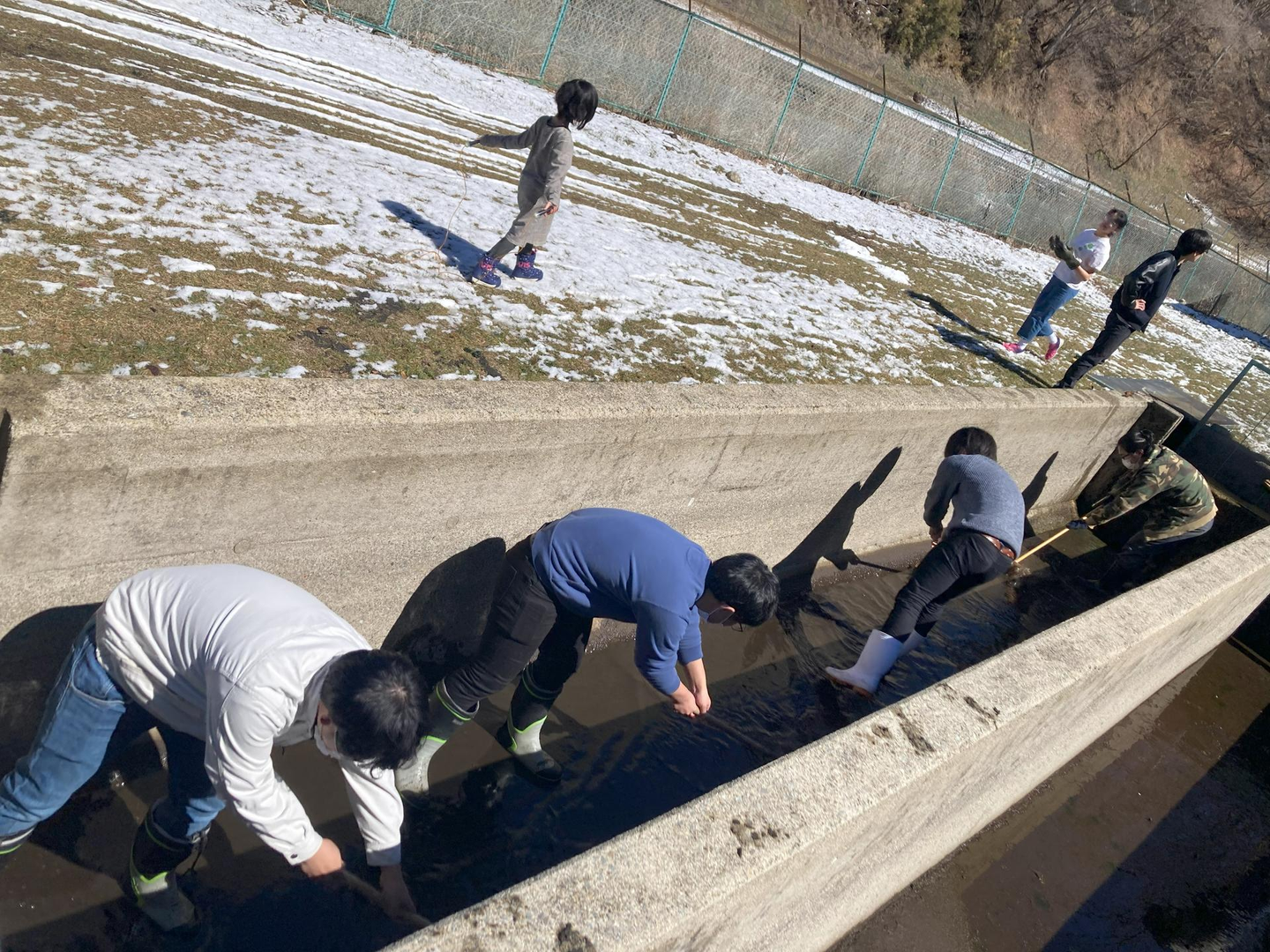 焚火を囲みながら地方創生について語り合ったり、小海支社が取り組んでいる養殖事業の体験で生簀の清掃を行ったり、地の食材を堪能したり。