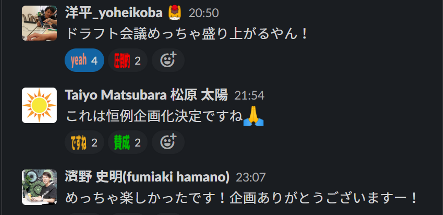 ドラフト対象者だけではなく、他のメンバーも巻き込んで全体的に良い影響を与えることができたのではと思います。