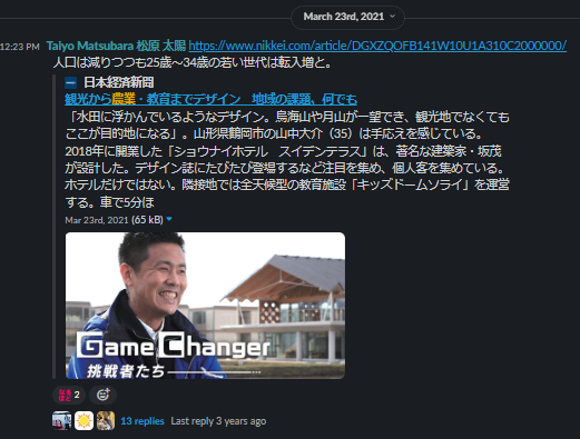 山形出身のメンバーはいきなり地元の話題が出て驚いたようですが、代表の道畑も「Vitalizeが目指すのはこれだね」と刺激を受けました。