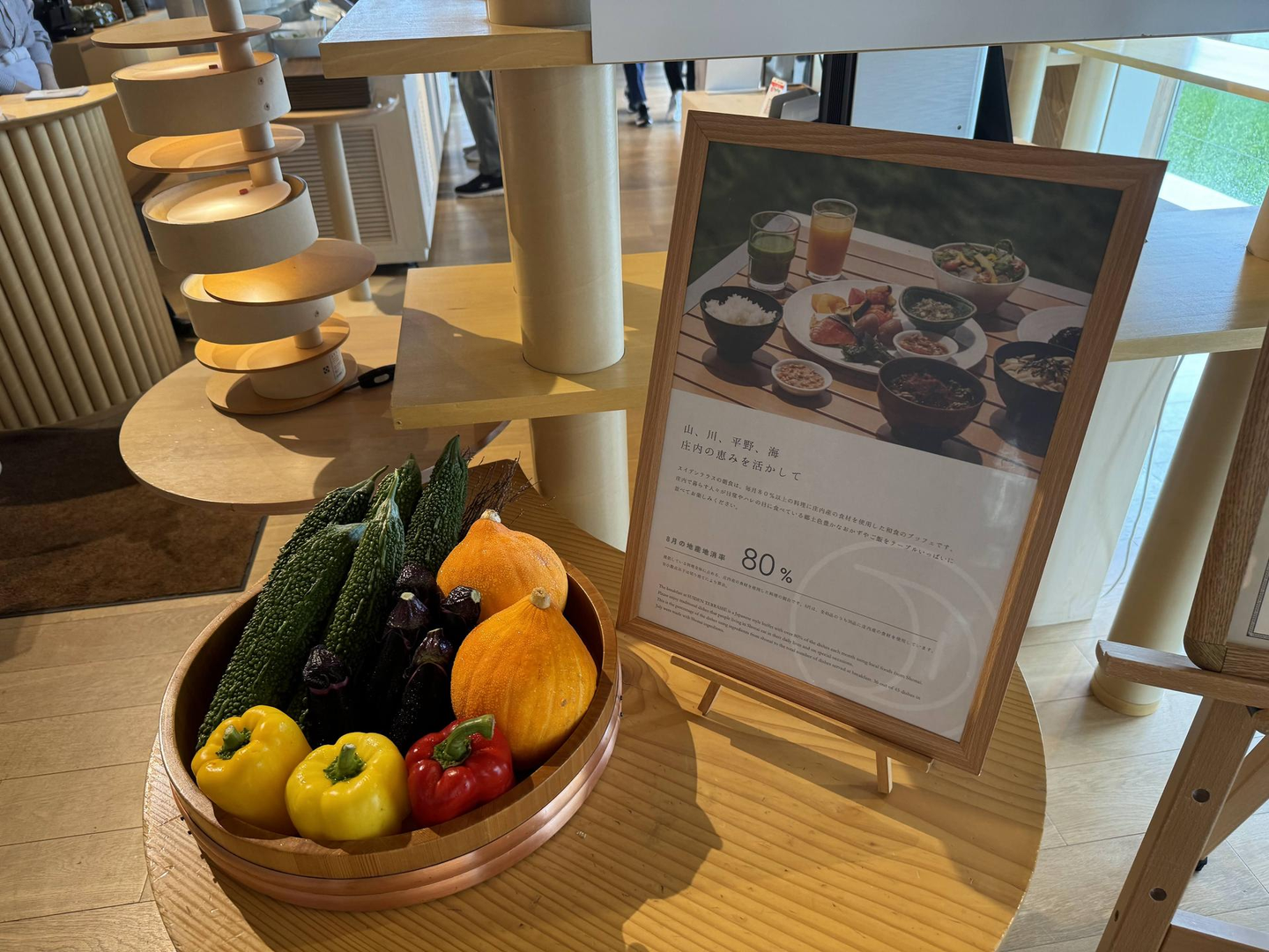 朝食はこの庄内エリアで取られた野菜を活かしたビュッフェ。