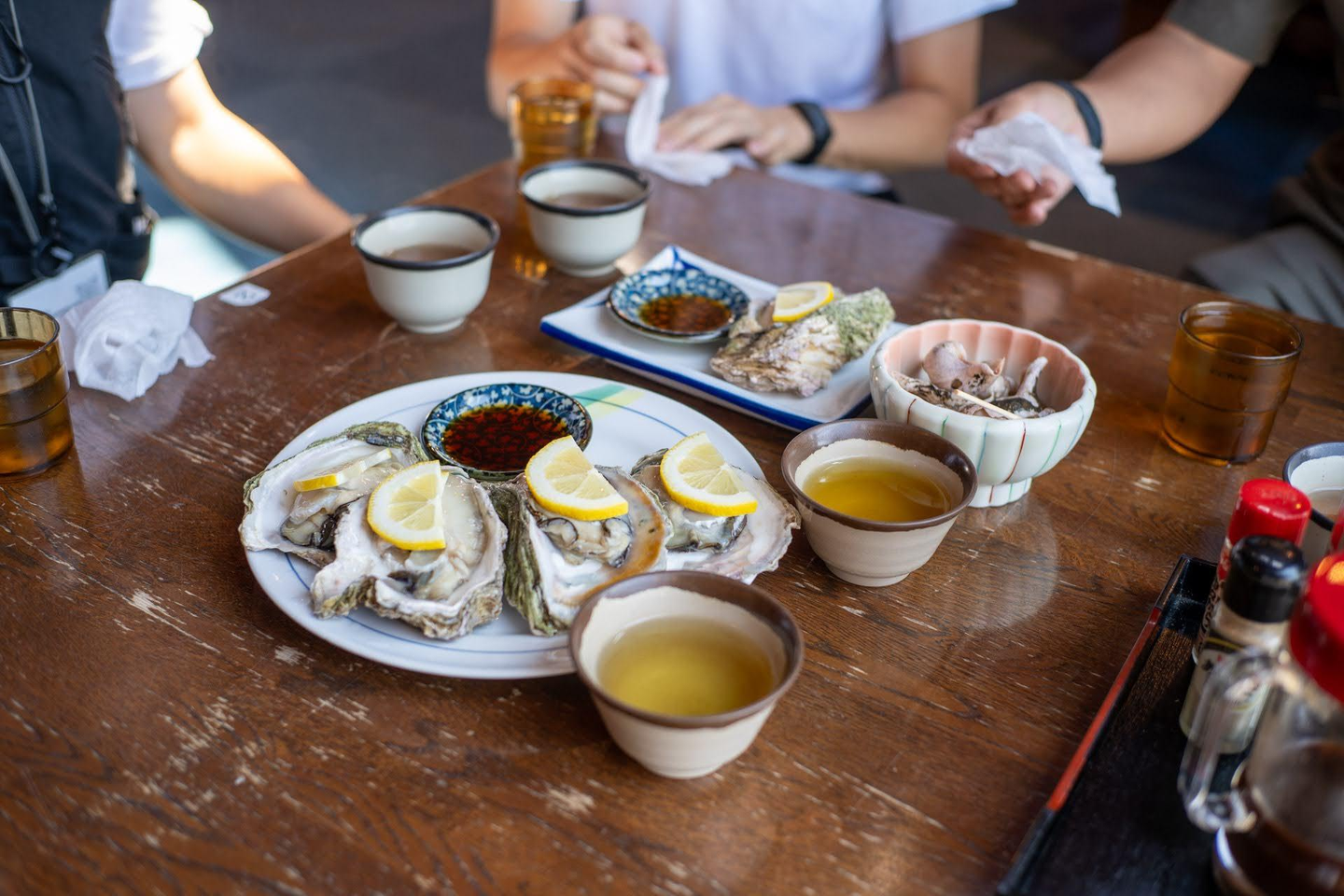 日本海側へ移動して、海沿いのお店で天然の岩牡蠣や新鮮な海鮮料理を食べました。