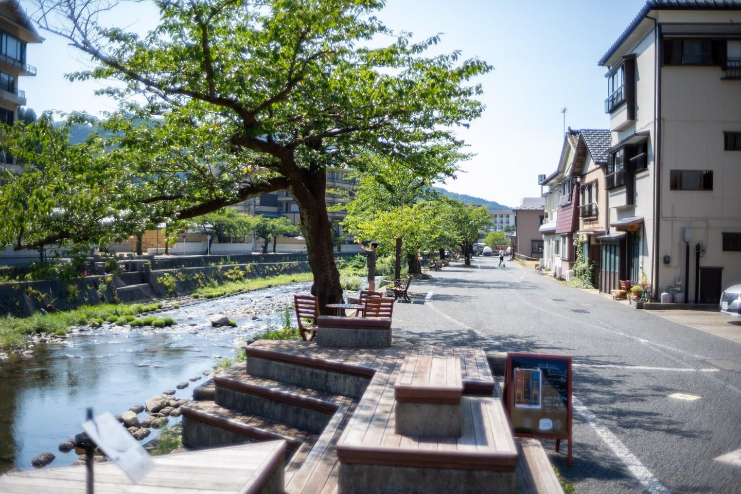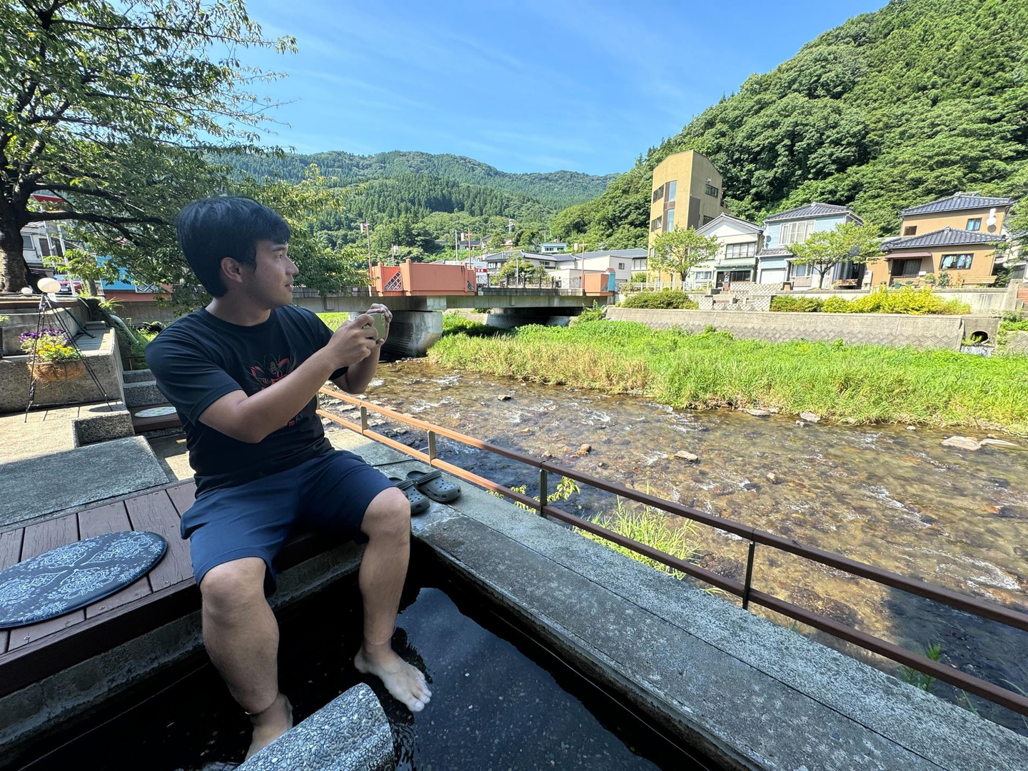 川のせせらぎや鶴岡市の風景に癒されながらほっと一息。