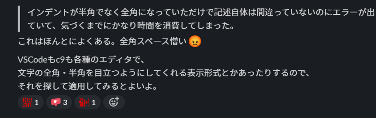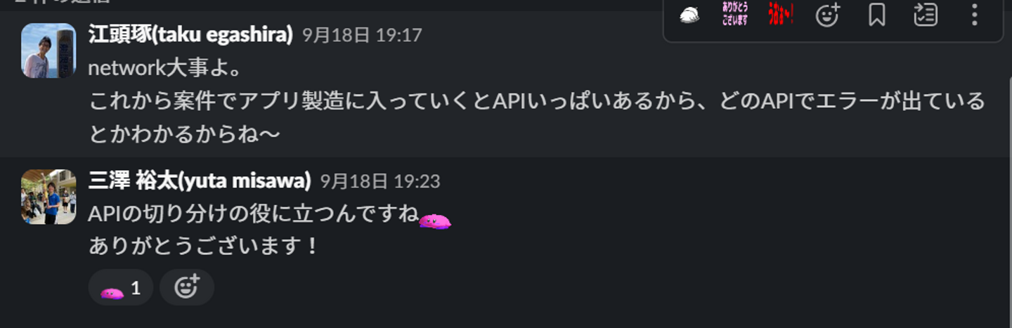 研修にはメンターがつきますが、メンター以外のメンバーも、自分が経験して得た知識や技術的なアドバイスや励ましが行われるのがこのチャンネルです。