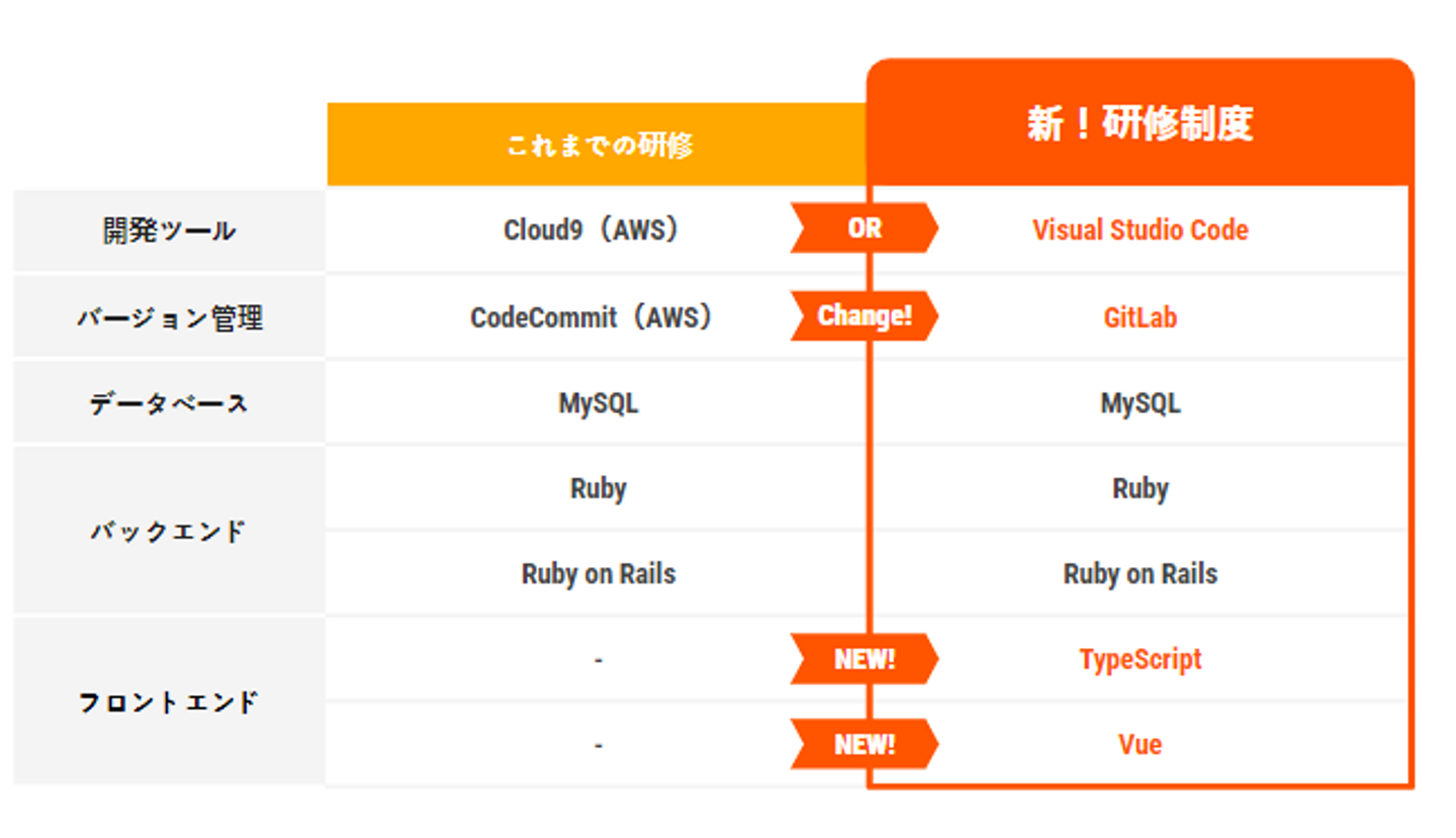 このようなIT業界の流行に対応するため、研修内容もアップデートする必要がありました。