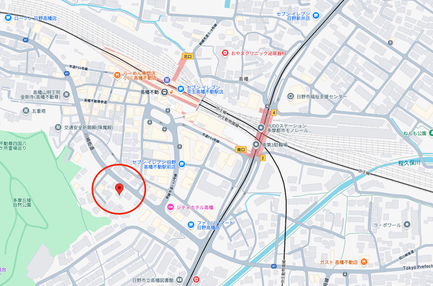多摩支店は、京王線高幡不動駅から徒歩10分程の場所に位置しています。