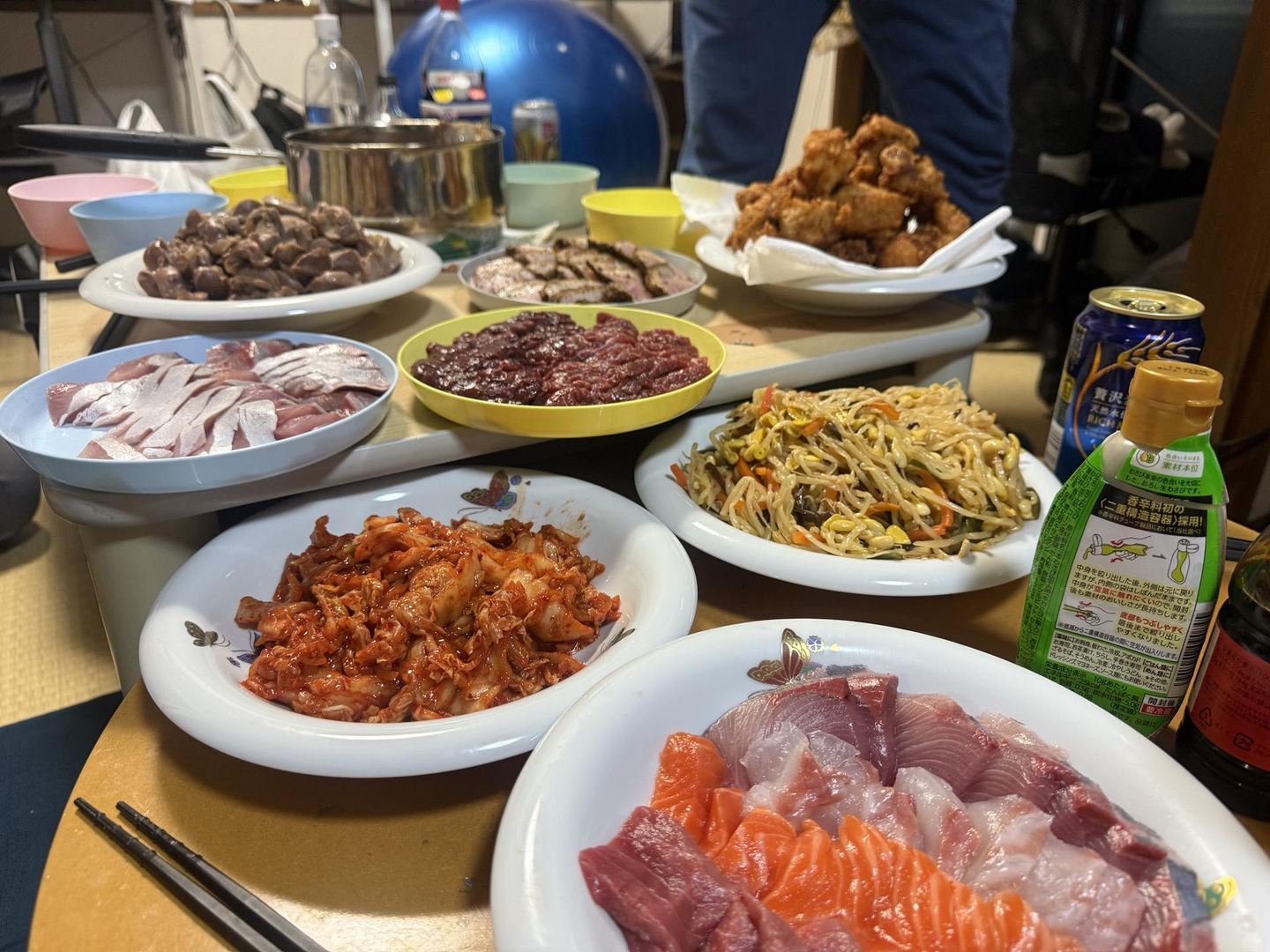 唐揚げ、ステーキ、刺身、手巻き寿司、鍋、色々ですね。