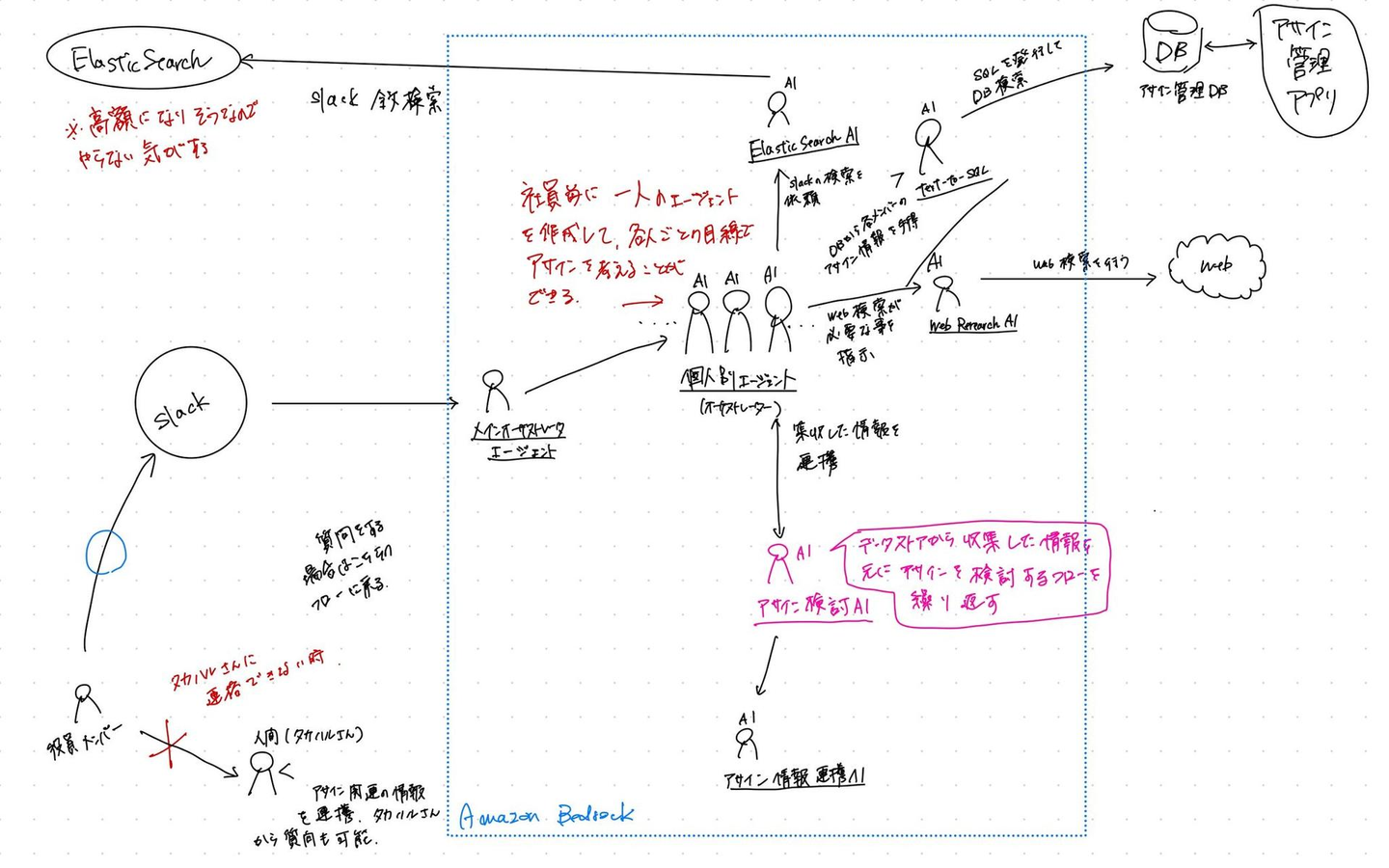 そこで、「アサインメント業務を支援するAIエージェントをBedrockで作れないか?」と考えるようになりました。