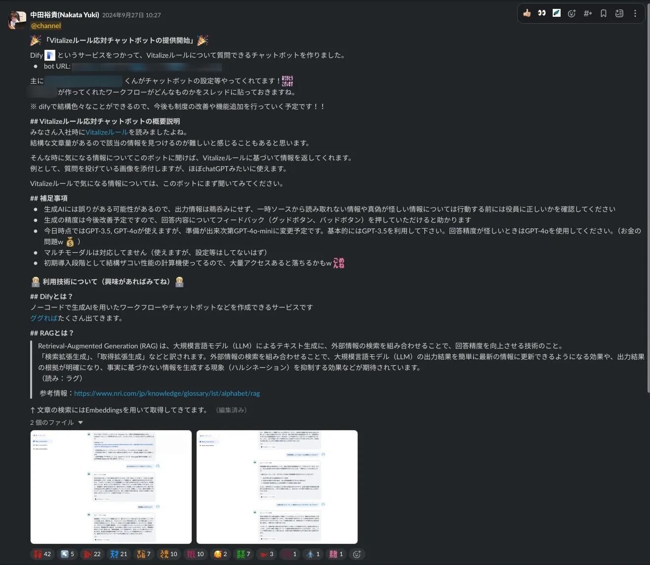 Difyも、RAGの精度が高くなり、かつ「誰でも・すぐに・アクセスできる」状態にしておけば、もっと活用されるようになるかもしれません。