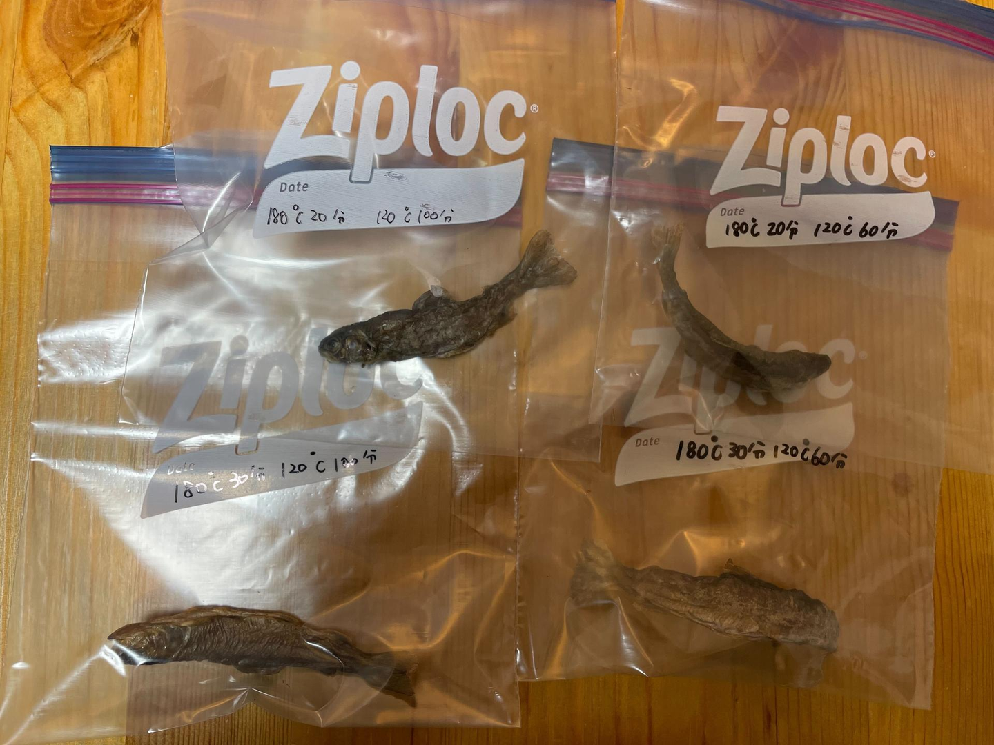 天日干し、オーブン加熱、煮干しのように茹でてから焼いてみる・・・。