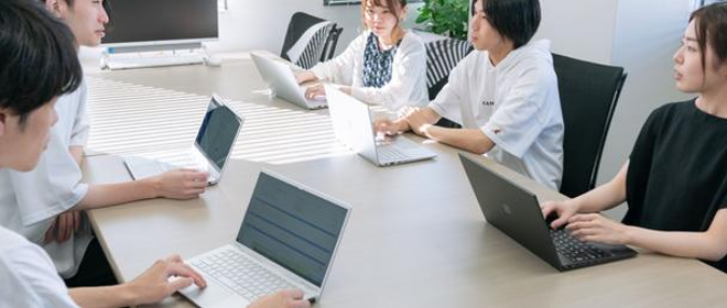 分からないことはすぐに先輩に聞ける環境で、チームで協⼒し合って業務を進めます。