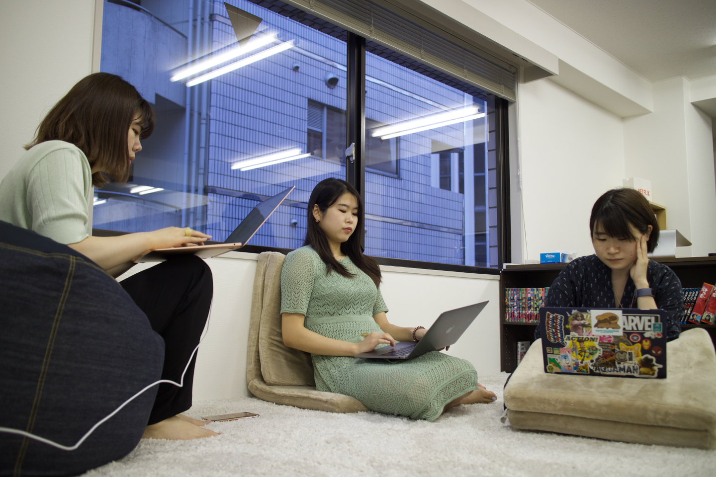 ちなみにこのスペースは「小上がり」と呼ばれています。寝そべって小休憩したり、体制を変えて作業したいときなどに利用しています。