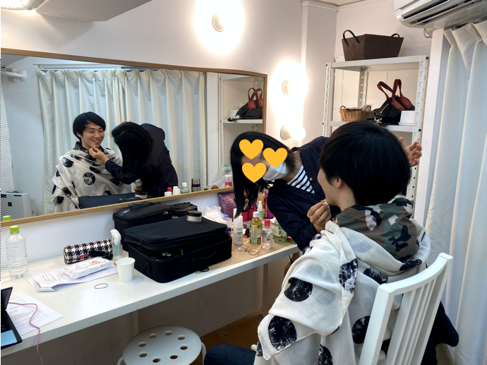 メイクされるのが初めてなのか、妙にニヤニヤしてますね、、