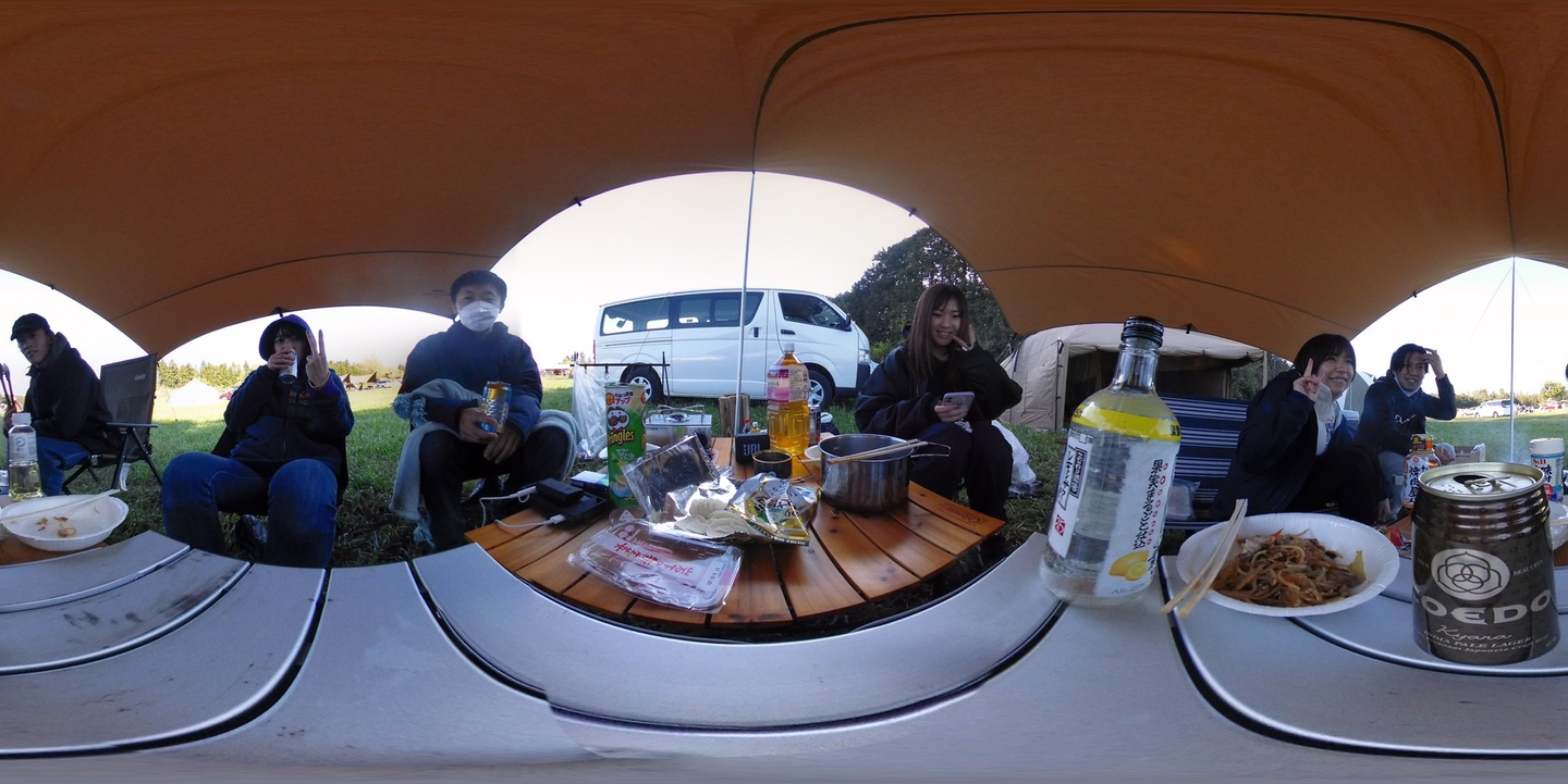 休憩の間に、360度カメラIQUI(イクイ)でもパシャリ。テーブルを囲みながら撮影でき、思い出の「瞬間」が切り取って楽しめるのはいいですね。