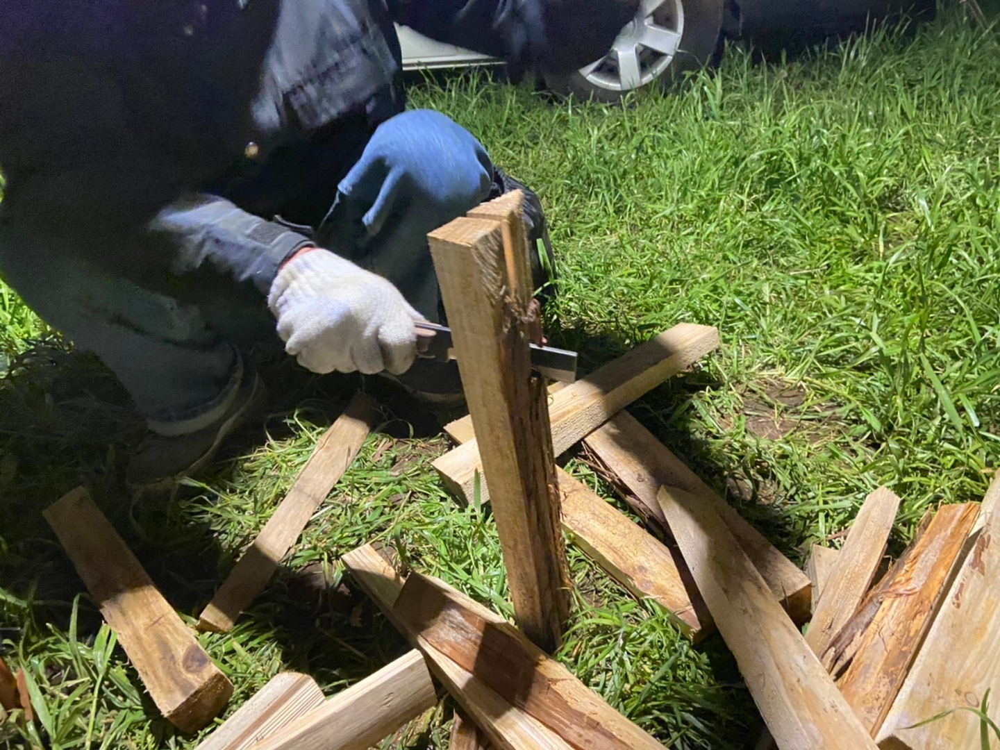 hinataECストアで大人気のBABACHOの多喜火鉈も活用。薪を割るって力仕事で女性は難しいイメージでしたが、なんと簡単にスカッと割れました。薪を割る感覚、快感で何度もやってしまいました!
