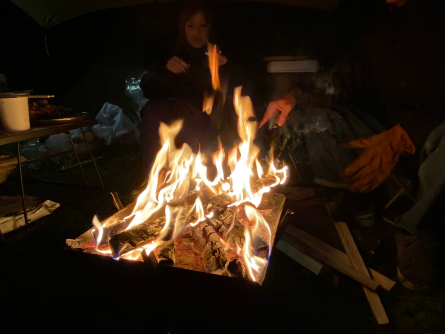 炎の暖かさとゆらめきに心委ねながら、メンバーで少しディープな話も。