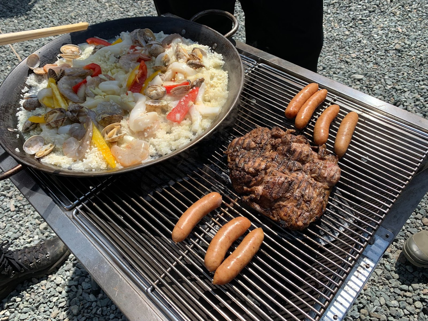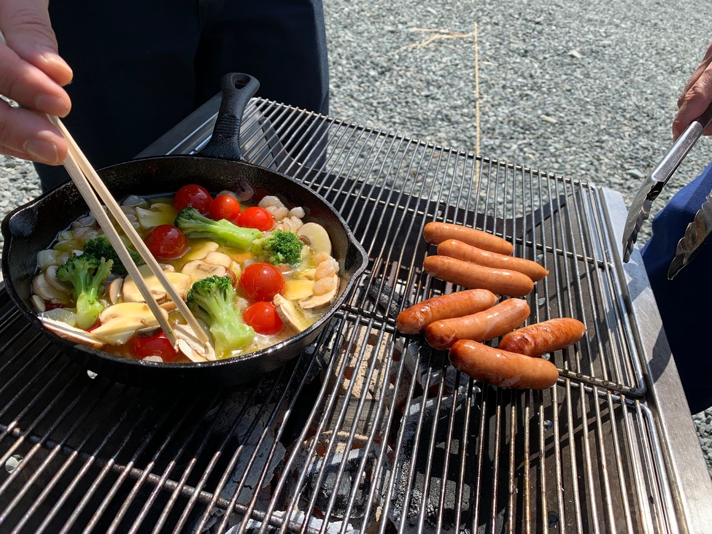 やはり、青い空の下で食べるキャンプ飯はどれもこれも絶品…!「花より団子」ではないですが、みんな料理に夢中になっていました。(私のチームはキャンプのベテランが3人もいたので、ぼーっと景色を楽しんでいたら美味しい料理が出てきました。ありがとうございます…。)