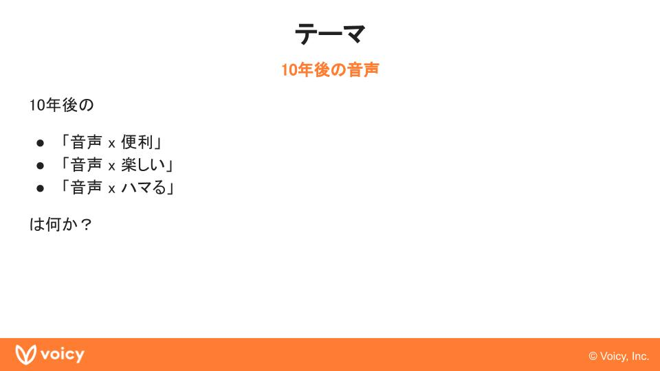 また「イメージしよう10倍に成長した姿を。そこから全ての行動を。」というVoicyの行動指針があり、Voicyが10倍に成長した未来を見据えたアウトプットになるように、という意味も込められています。