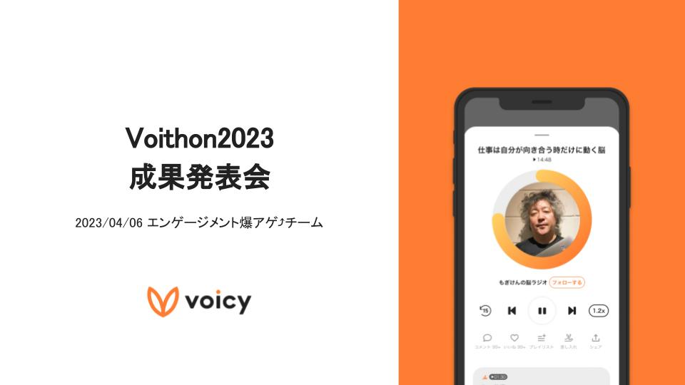 音声放送チャンネル「Voicyエンジニア」の「10年後の音声を考える! 「Voithon」をエンジニアチームで開催しました!(2023年4月19日放送)」。Voicy - 音声プラットフォーム