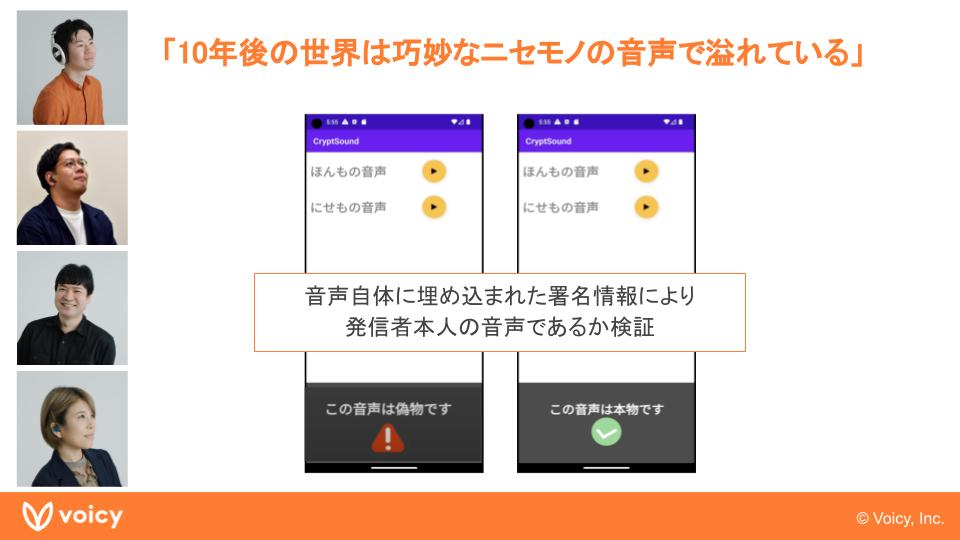 AIの進化が凄まじい中で、10年後には“ニセモノ”が溢れているかもしれない…。そんな未来に向け、本人性を担保する情報から、音声の真偽を検証できるプロトタイプを製作したTeam Numa。