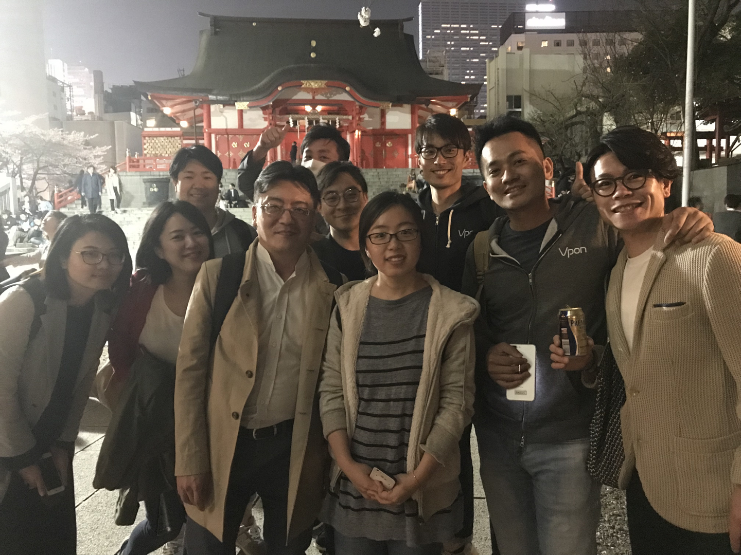 ディナーのあとは、近くの花園神社へ夜桜観賞◎