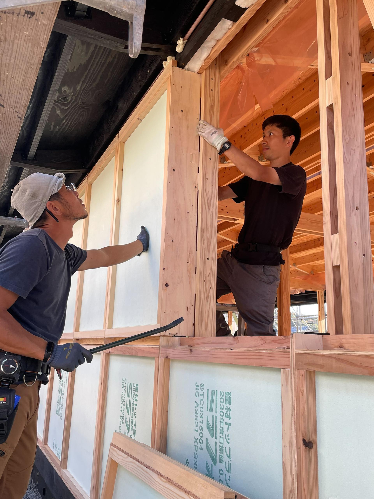 新しいメンバーを迎えるべく、アーキテクトビルダー(設計施工管理)の募集を行っています。そこで、アーキテクトビルダーの仕事内容をお伝えすべく、1棟目施工中の様子を西村俊貴/アーキテクトビルダー(設計施工管理)、井上匡都/コンストラクションマネージャー(現場管理)に話を聞きました。