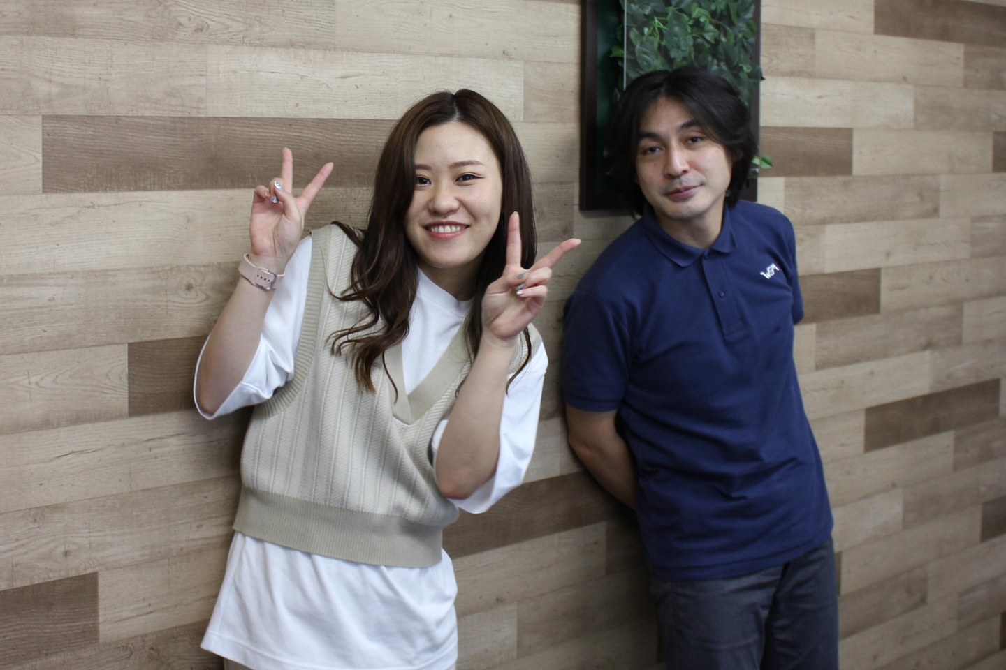 ▼求人の写真撮影の一コマ (左:私 右:佐治さん)
