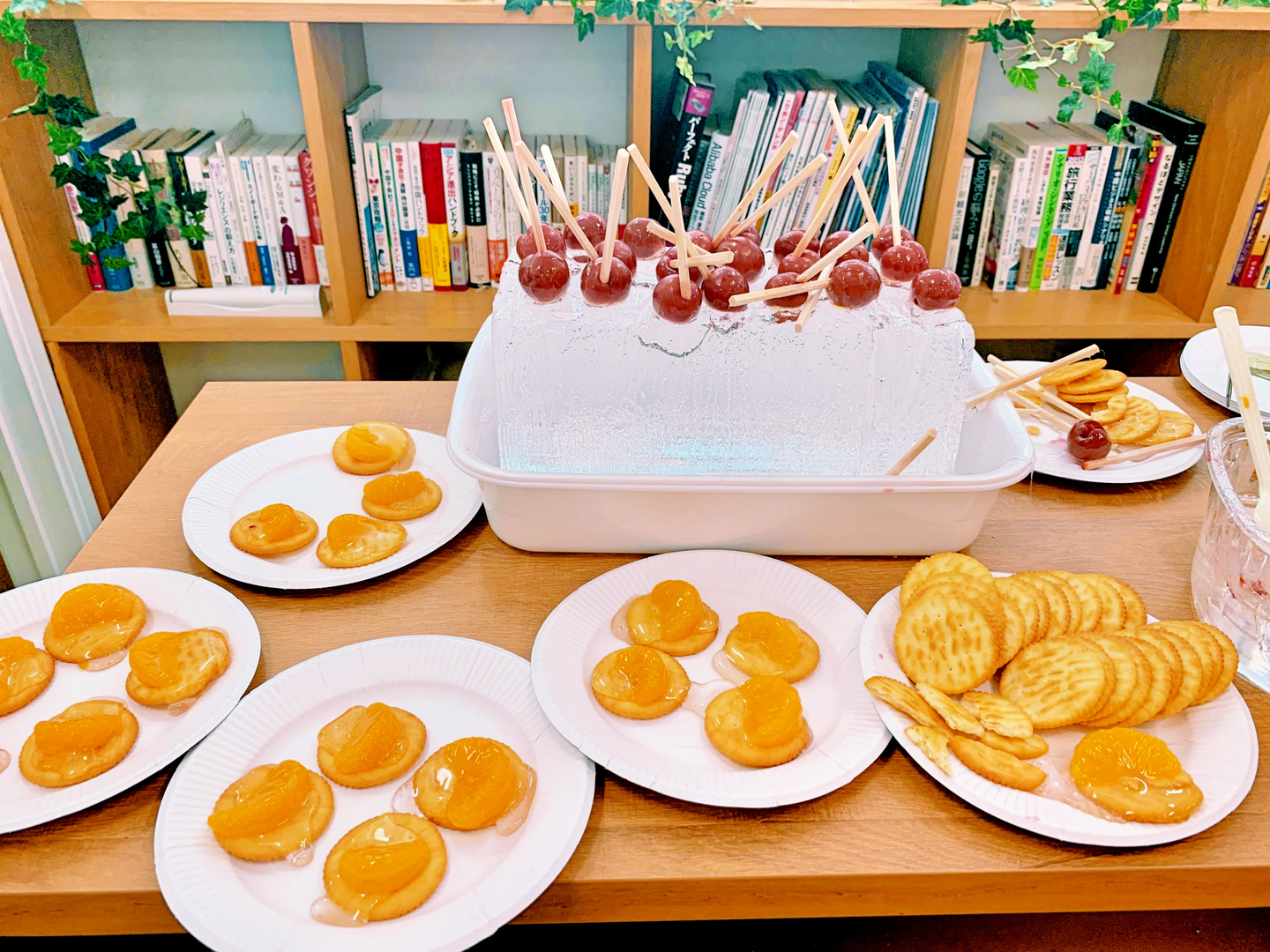 すももとみかんが彩り鮮やかで、外国人スタッフ中心に、見た目・味共に大好評でした!