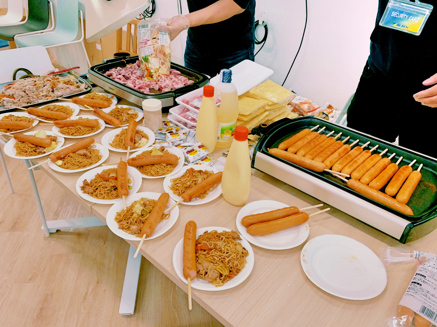 焼きそばは60人分、フランクフルトは80本用意していたので、これだけの量作るのはかなりの重労働ですが、屈強な男性スタッフ2名(うち1名は当社役員)が、愚直に作り続けていました(笑)