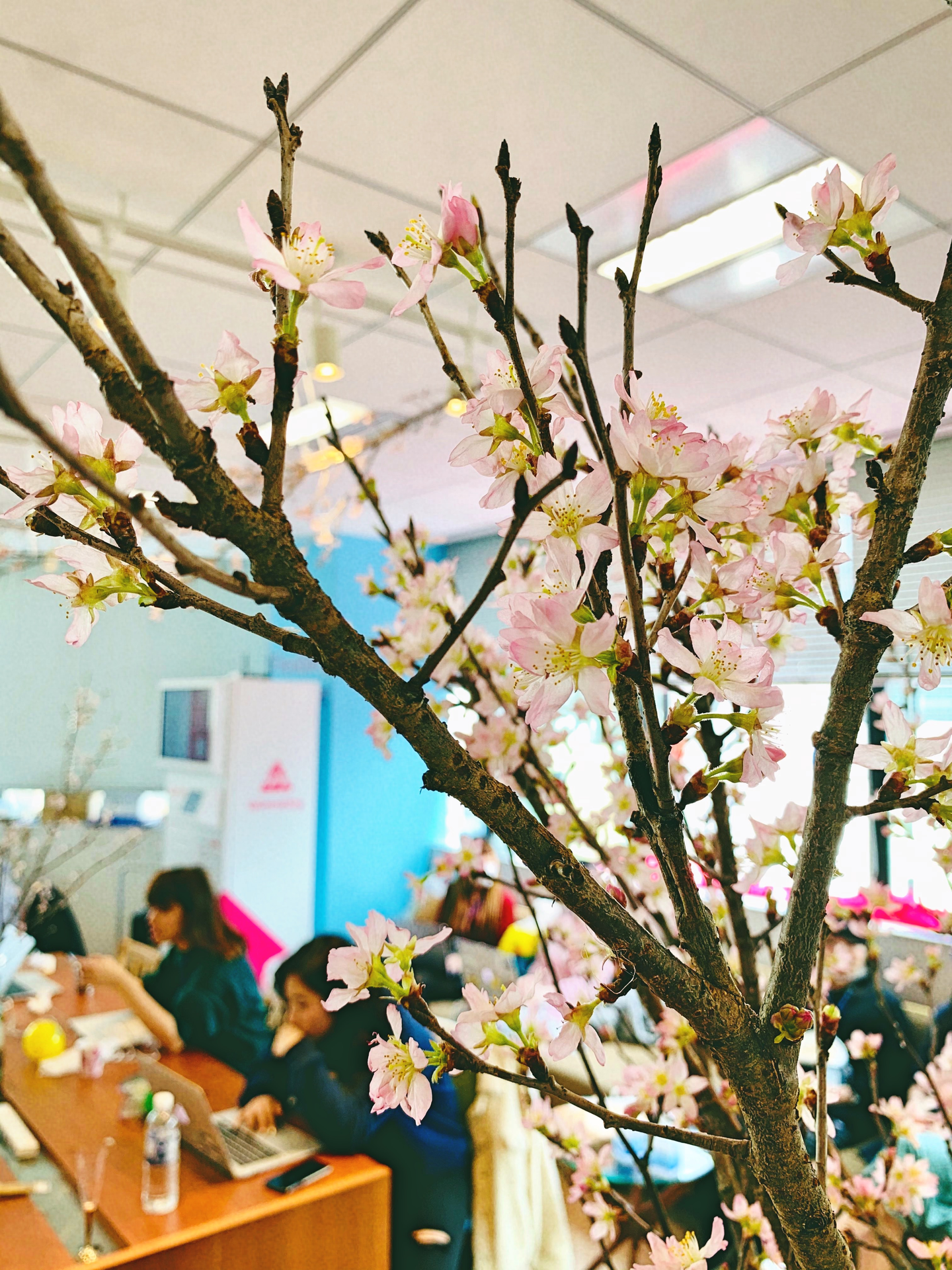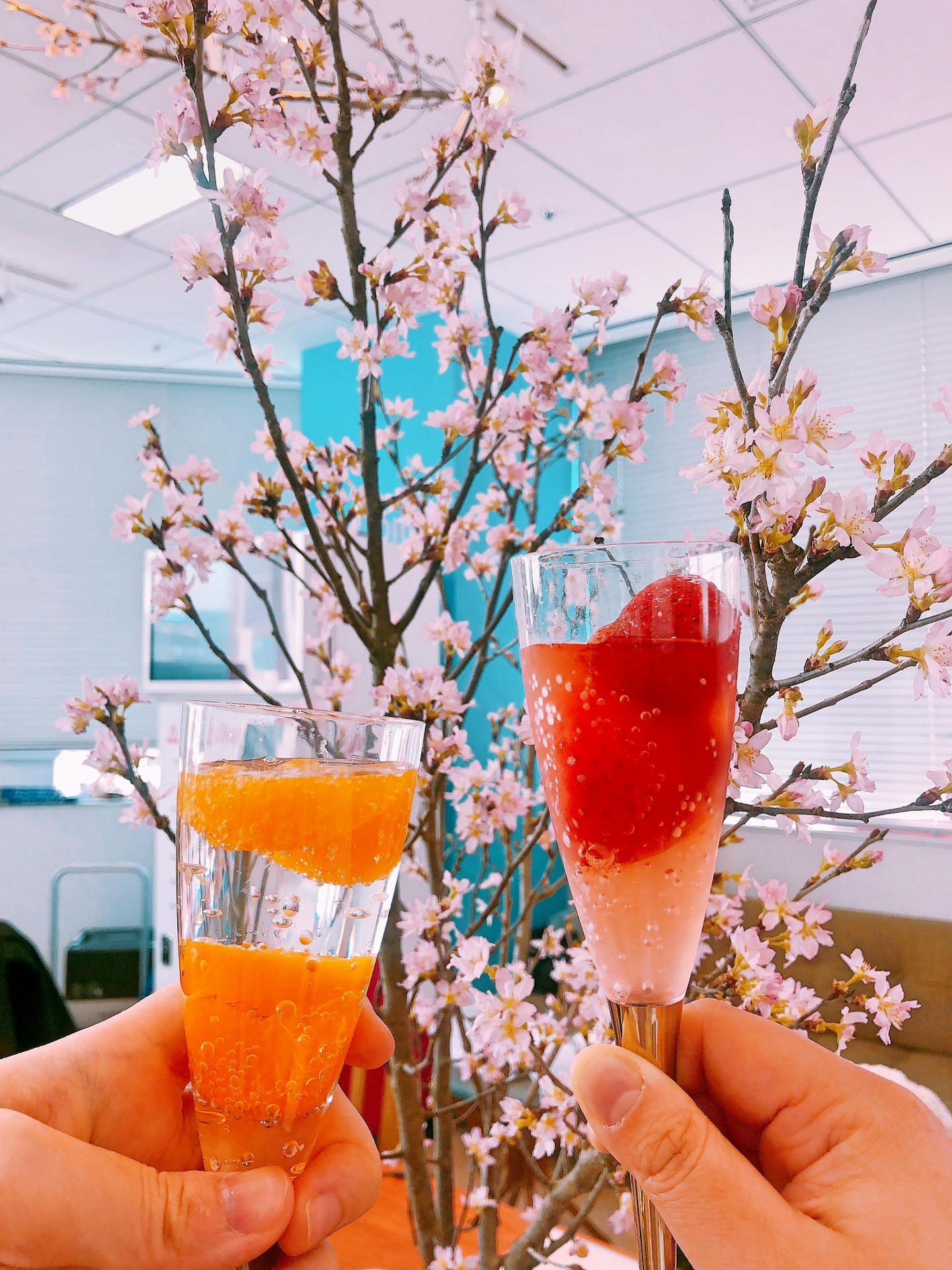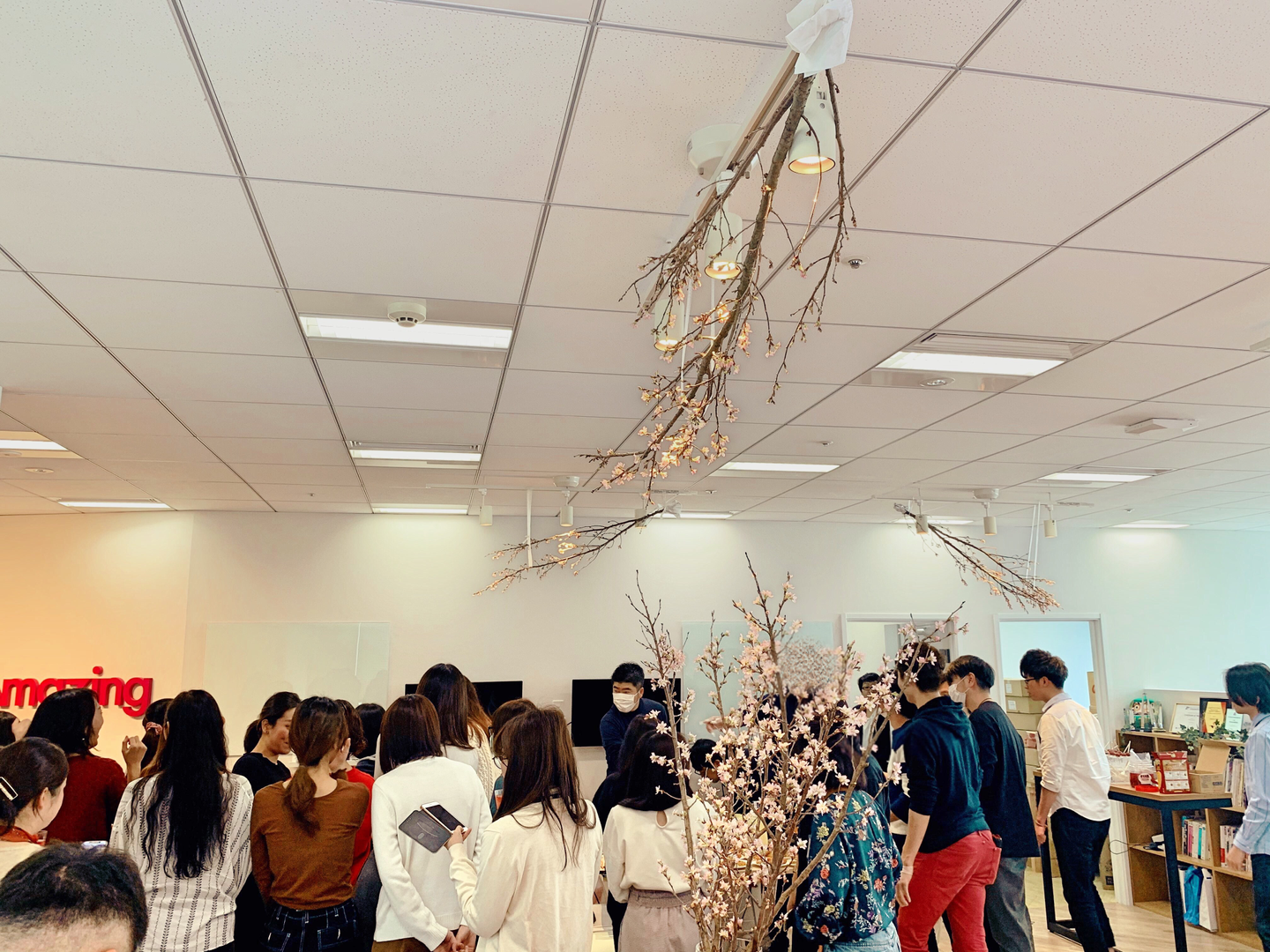 ちなみにこの桜、マーケティングチームの横山さんが調達・飾り付けの監修を行ったもので、プライベートで華道をやっているだけあり流石のセンス!
