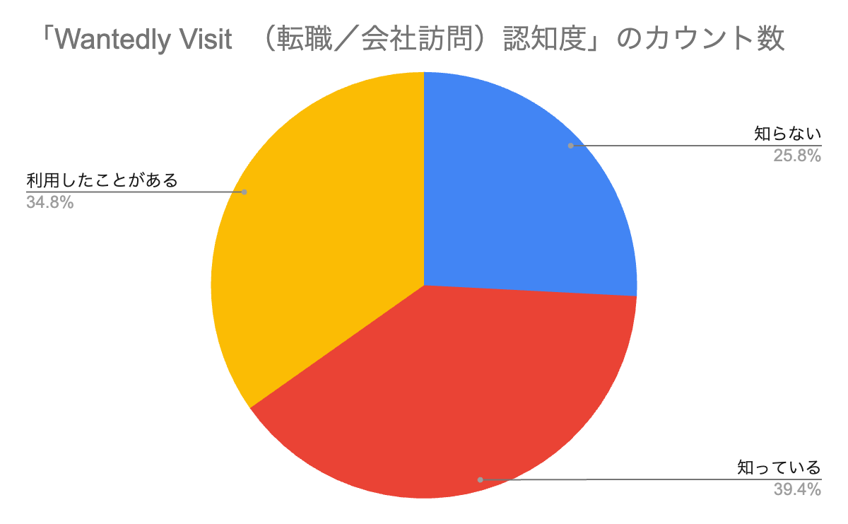 今回のアンケートではわたしたちWantedlyのサービスの認知度を質問させていただきました。