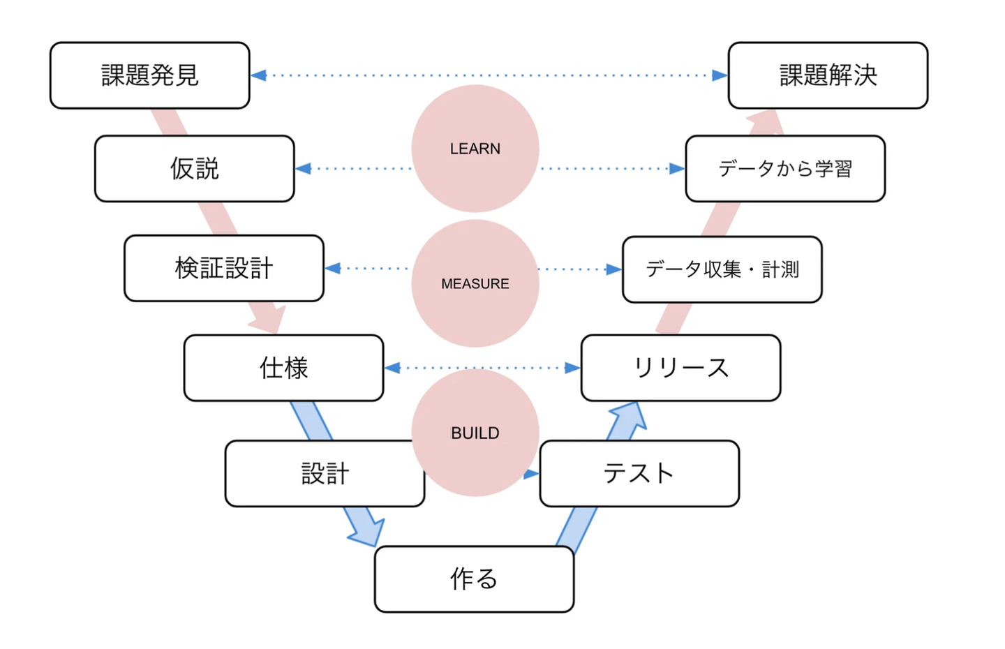 この違いを理解するには「Build – Measure – Learn」のリーンサイクルを回すことが欠かせません。仮説を立てて(Learn)、最小限のものを作り(Build)、実際のユーザーの行動データを集め(Measure)、そこから再び学び直す。このループを何度も回すことで、少しずつ課題解決に近づいていきます。