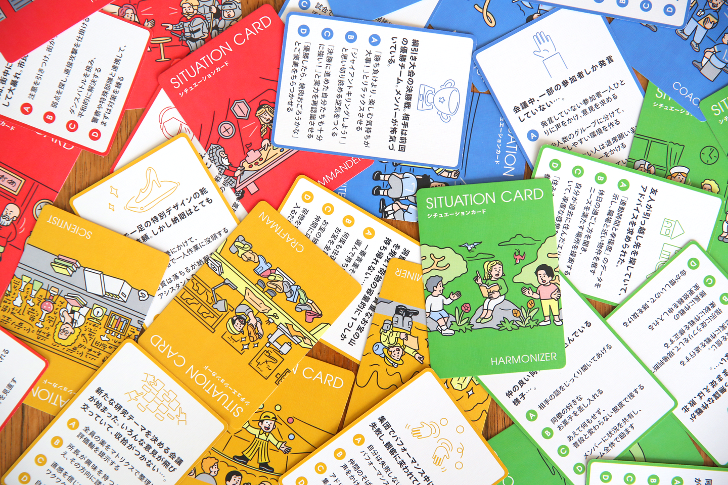 ゲームのルールは、あるシチュエーションにおいて、4つの選択肢から優先順位を決め、メンバー同士で互いの答えを予想し合うというシンプルなものに。そのやり取りを通じて、自然とチームの理解が深まる設計にしました。