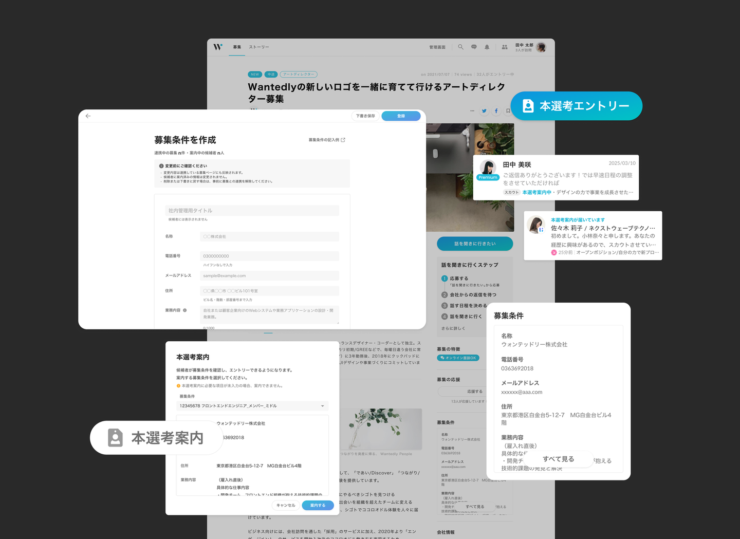 選考後のミスマッチを減らす目的で、オフィシャルエントリー機能を実装。企業は募集ページに表示される基本情報や必要項目をすべて登録することで、候補者に労働条件等を提示してからの本選考への案内が可能になった。