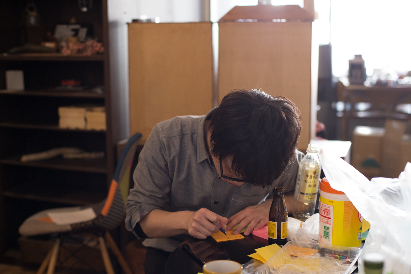 ワークショップの際は、A4用紙、方眼紙、ポストイットを大量に使い、アイディアを書き出していきました。A4用紙はコミュニティスペースの方に用意して頂き、大変ありがたかったです。コミュニティスペースに用意されたホワイトボードやプロジェクターなど、設備はフルに活用させて頂きました。おかげ様で、実りのあるワークショップになったと思います。