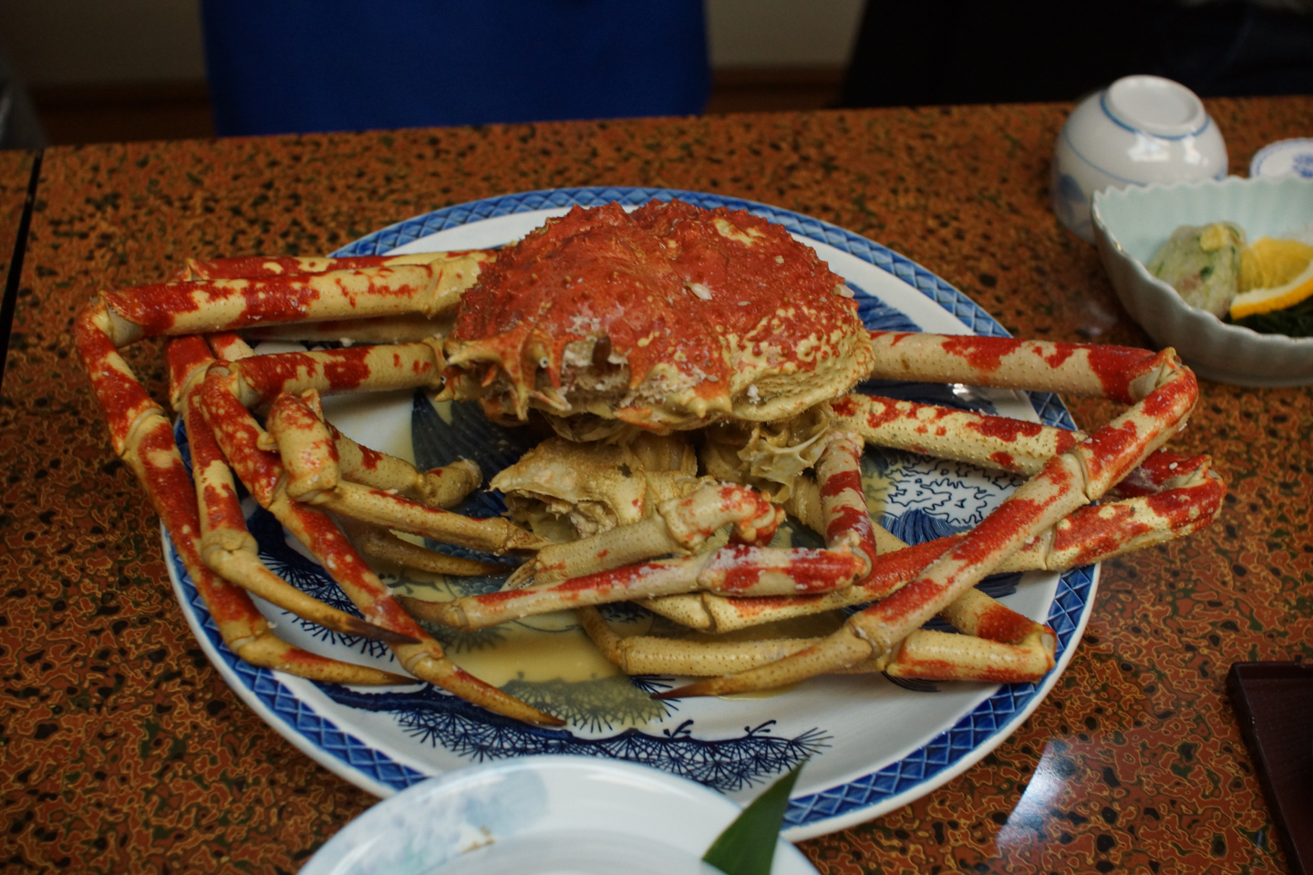 また、夜には温泉旅館で「高足ガニ」を頂きました。カニ味噌につけて頂く高足ガニは絶妙で、幸せな夕ご飯となりました。