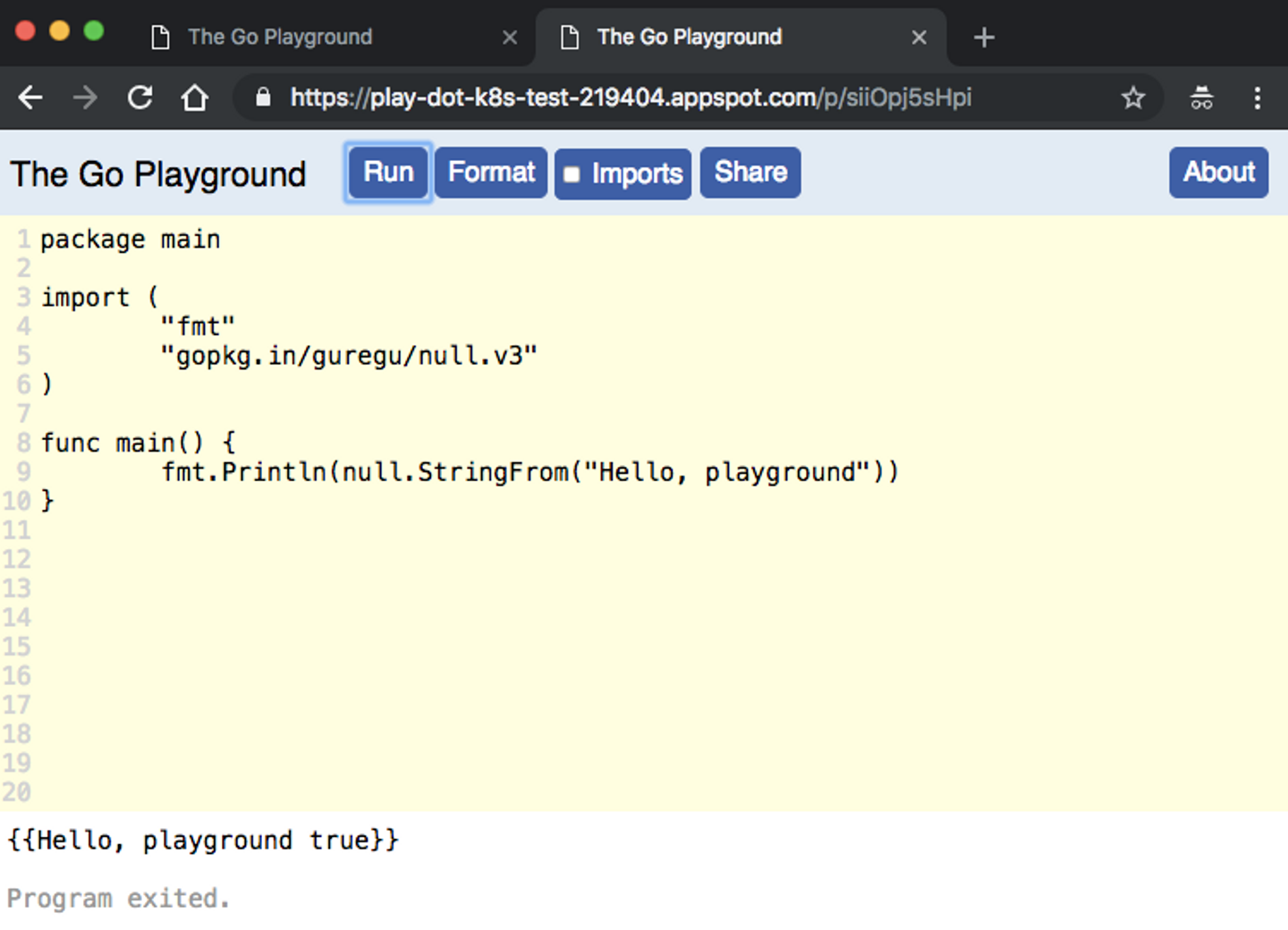 これは非常に良くて、Railsではrails cでコードを試していたように、PlaygroundでGoのコードを試すことができます。