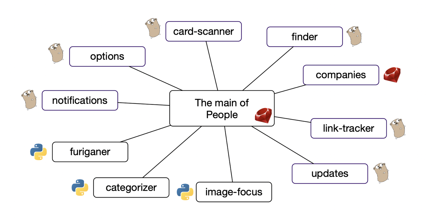 以上のような大枠の技術理解があるため、People では Ruby と Go をサーバーサイドの主要プログラミング言語として採用しています。そして Go はプロトタイピングなど漸進的な仕様の試行錯誤が必要は領域よりは、作りたいものが予め明確な領域であるマイクロサービスの実装に多く利用することにしています。
