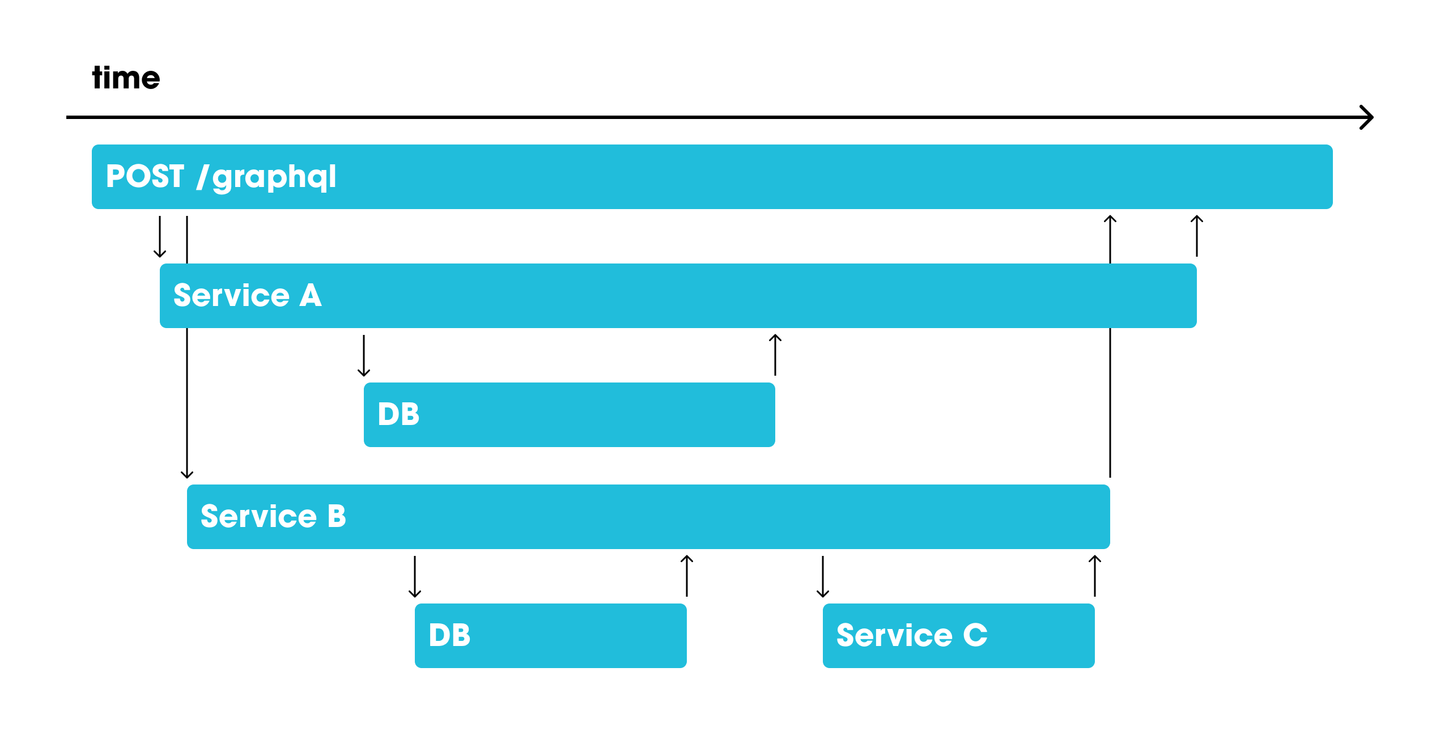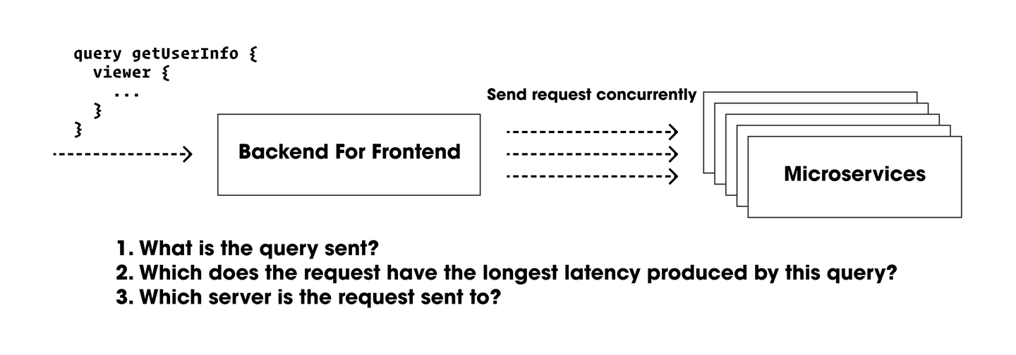 この BFF と他の Microservices の間の結合部分の observability を担保しないことには開発の効率が落ち、場合によっては障害時の原因調査が難しくなるのが容易に想像できます。僕たち Wantedly の BFF では "/graphql" のような単一のエンドポイントに様々な種類のリクエストが呼び出されるので、どの query / mutation が呼び出された時にどれくらいのレイテンシなのか、この時どのサービスにどんなリクエストが送られているのか等を計測・可視化しておかなければなりません。