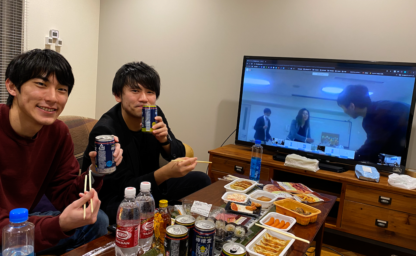 私達は急遽コンビニで調達してきた食材が多かったのですが、ある一つの研究室は、本格的に海鮮鍋を仕込み始め、本当に自由な空間でした。(羨ましい)