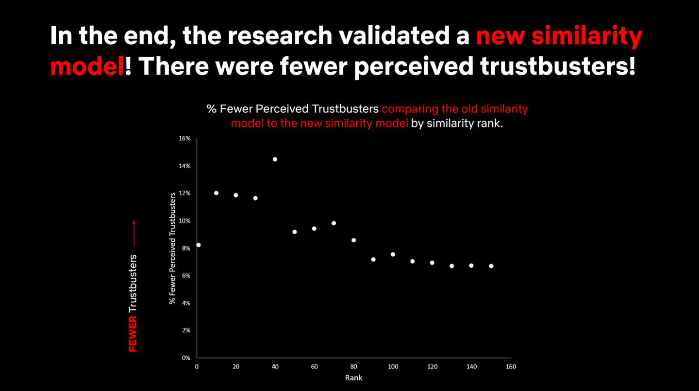 最終的にウェブでそのコンテンツについて調べてみると面白そうであったため、視聴してみて実際に面白かったからよかったのだが、「More Like This」をよりよいものにするためには、推薦されるコンテンツを見たその瞬間、その人にとって、そのコンテンツが推薦されている理由が分かりやすく、その推薦結果をユーザが信じられるようなコンテンツを推薦するべきだという思いに至ったとのことだ。