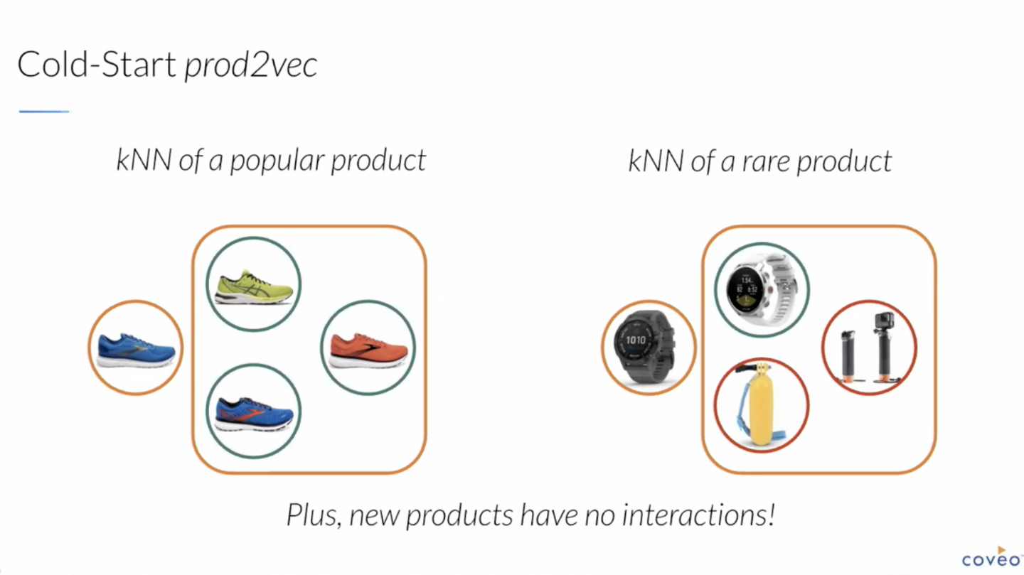 一方で、関連 Interaction が少ないアイテム(限定的、不人気なアイテム)は教師データが少なく、ベクトルのクオリティがあまり高くできない場合があります。