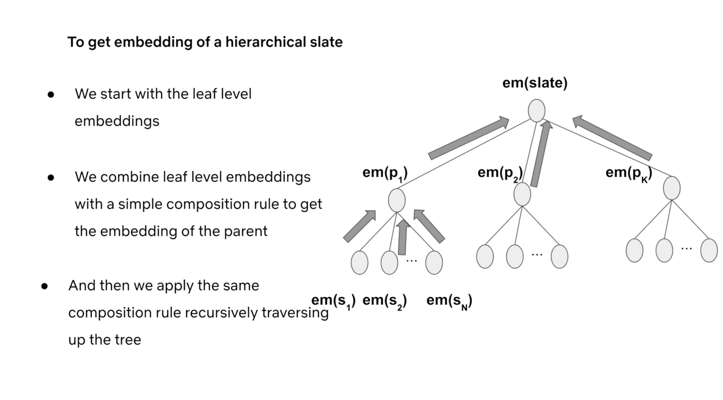 そこでこの論文では、複数の子アイテム(Slate)から成る Slate の Embedding を、子アイテム(Slate)の Embedding を集約することで構築する方法を提案しています。