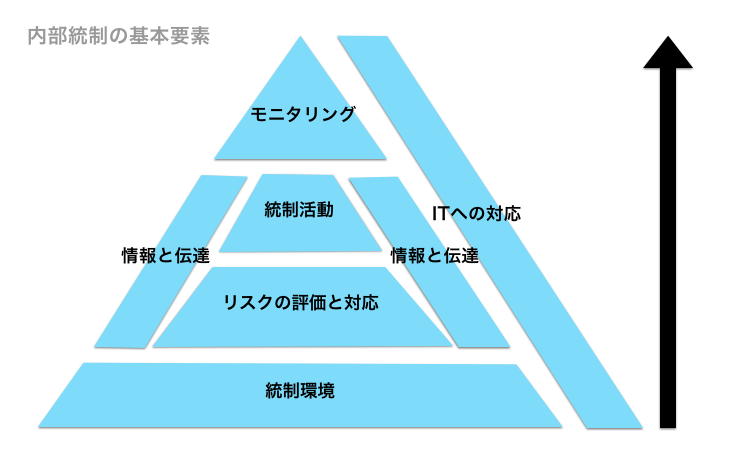 図の通り統制環境は全ての要素の土台となっており、内部統制を理解する上でも「全ての要素の土台だからここがまずしっかりしてないといけないよ!」という文脈で学ぶことが多いです。