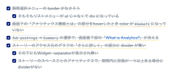 下図はチェック会で気づいたスタイル崩れや修正漏れの事項(一部)です。