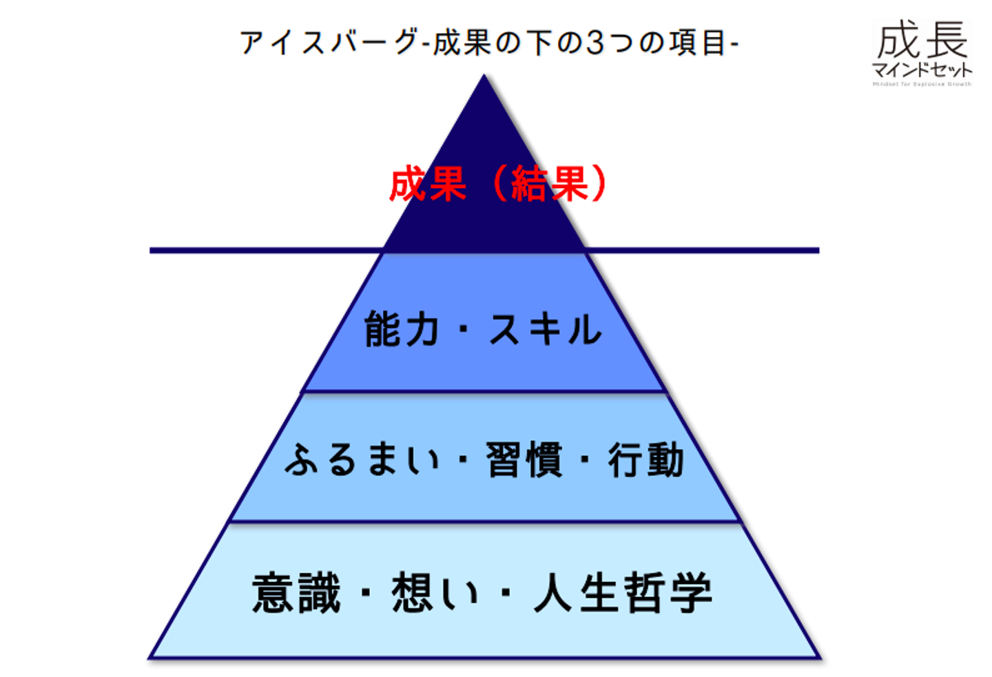 すごい刺さりました!その時学んだのは、目に見える成果には、日々の習慣や行動といった見えない土台があり、さらにその土台には、意識や想いが存在しているということ。
